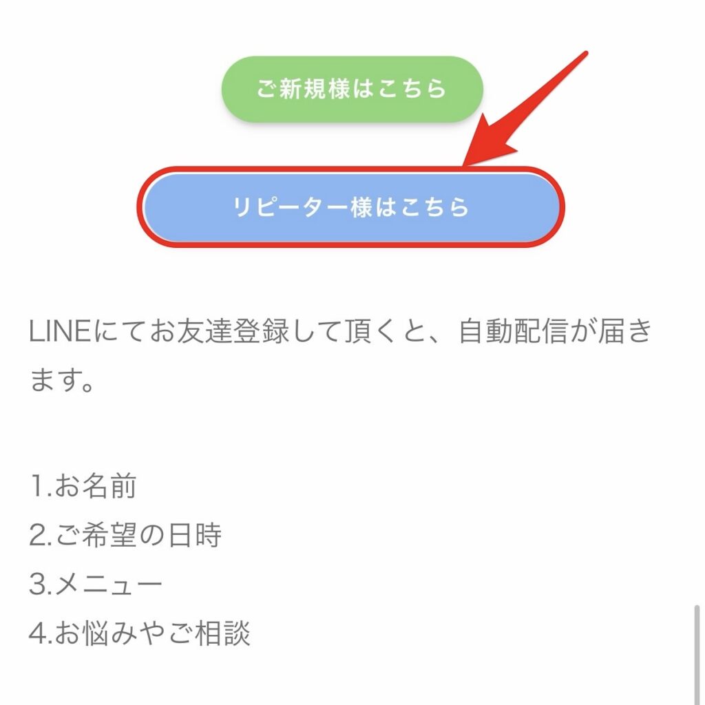 →なお、こちらは【ご新規様は予約受付用ではありません】のでご注意ください。