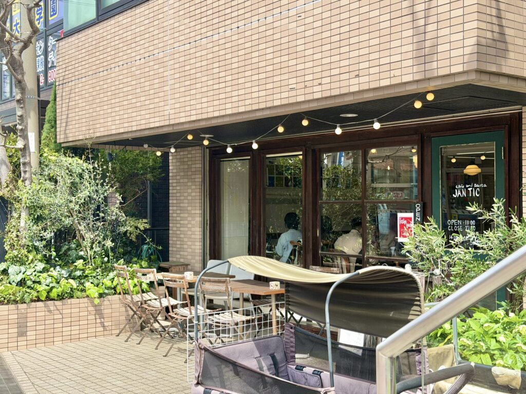 入り口のオープンテラスとグリーンが印象的な外観のカフェ。2023年のmeet hairのオープン前から何度も利用しておりました。
